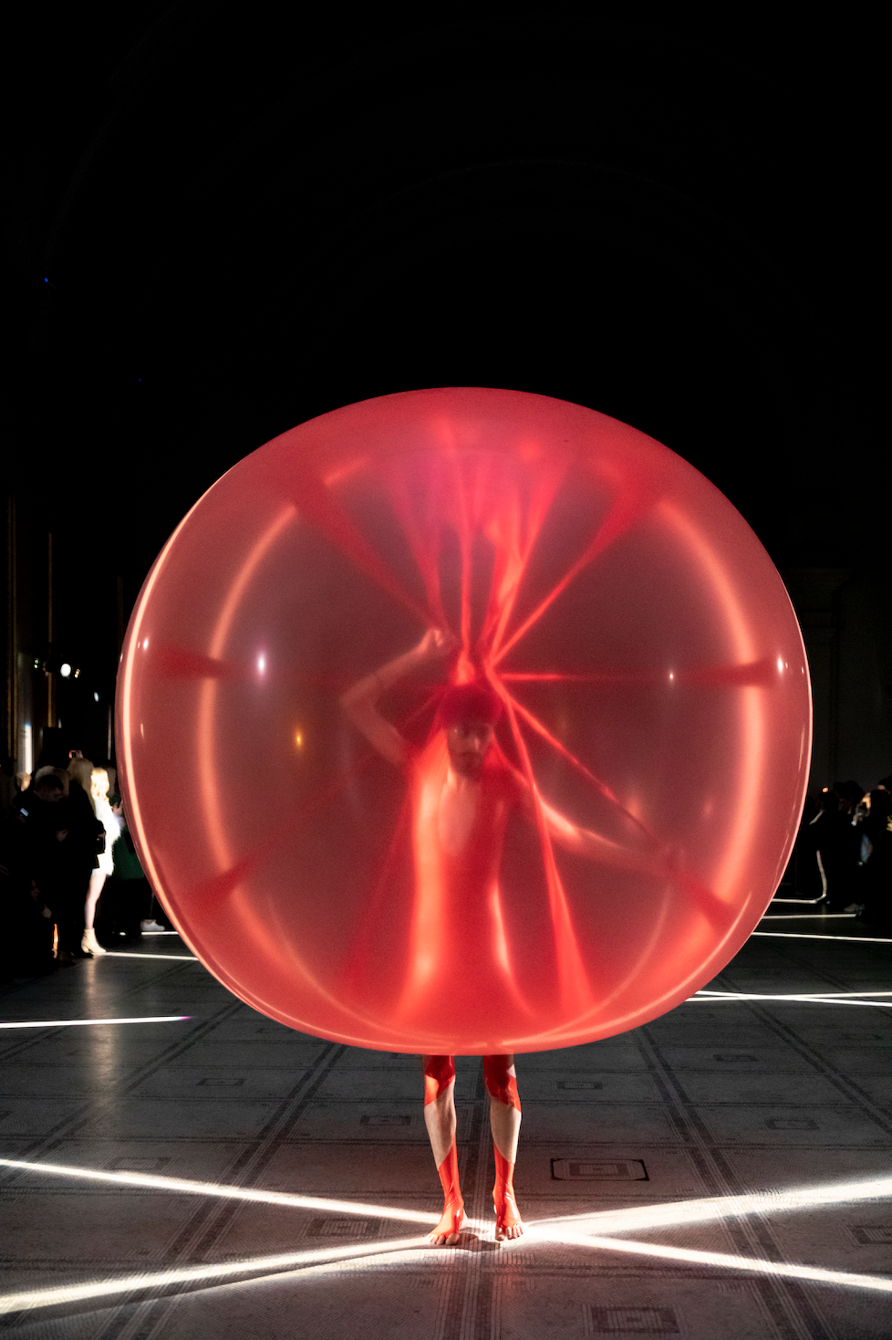 His Fashion in Motion event built upon his Moments of Clarity showcase, with otherworldly ‘bubbles’ in movement within the grand expanse of the V&A's Raphael Gallery.