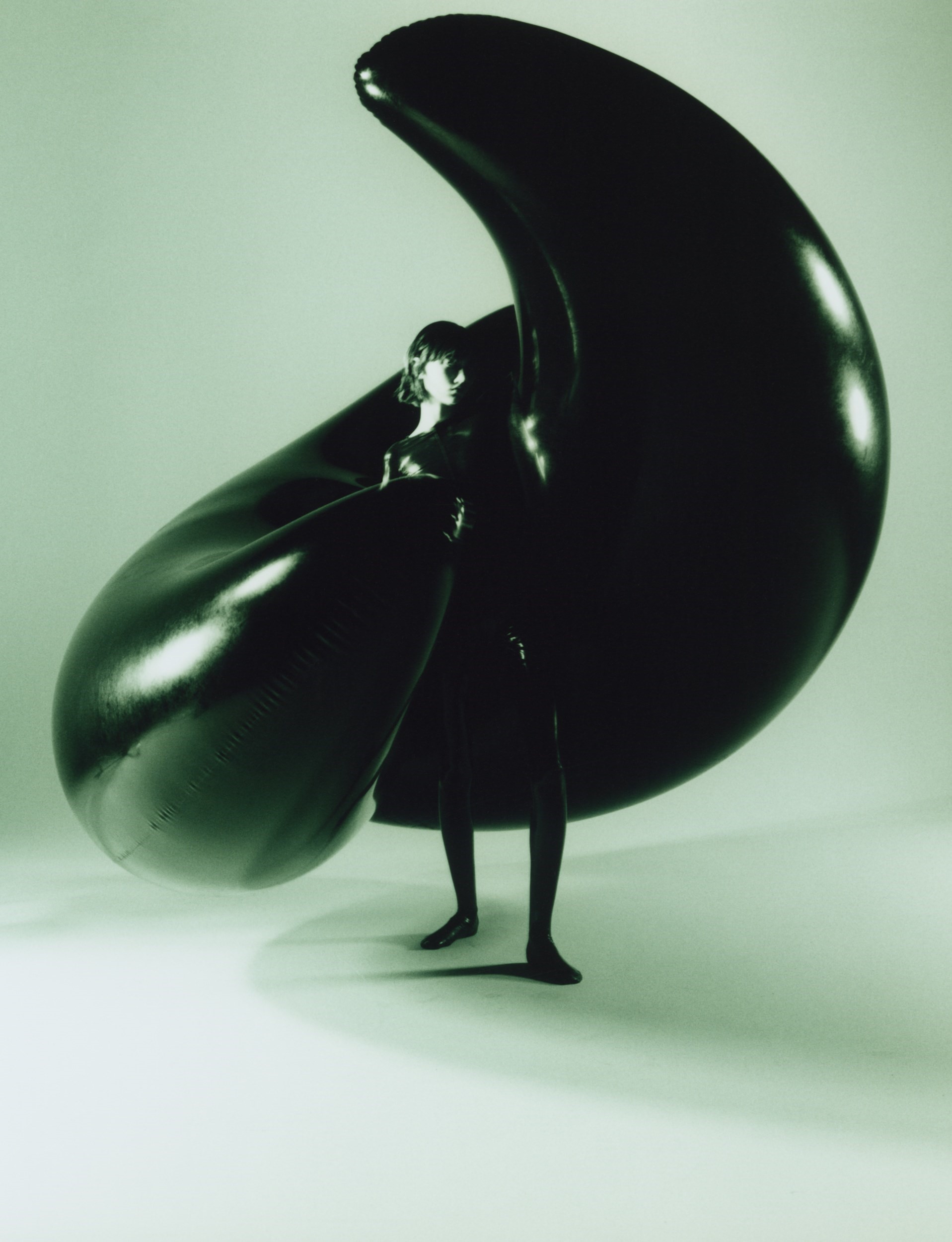 Since the show, Tjærandsen has spent the summer holed up at 1 Granary Square developing new pieces. Across from us sits a tent-sized rubber toile for a brain-like dress entity he’s working on for stylist Ibrahim Kamara. “It’s just all exploded,” he says, luckily not talking about his balloons. “It has been so overwhelming but so fantastic. I’ve met a lot of people who have shown interest in my work and want to help out.”